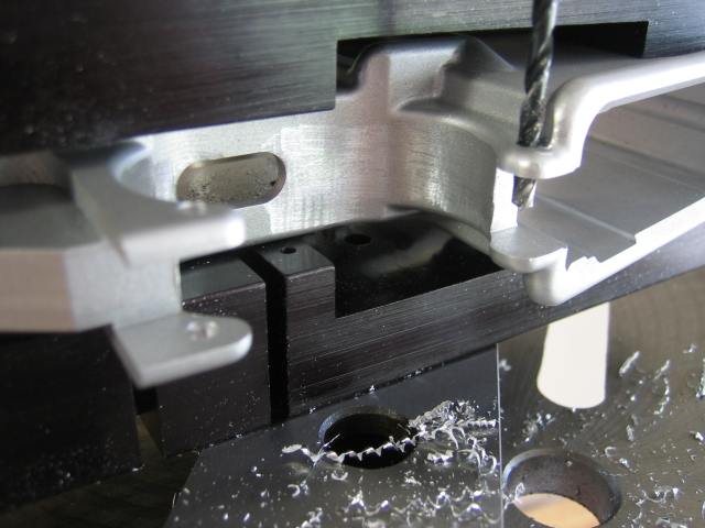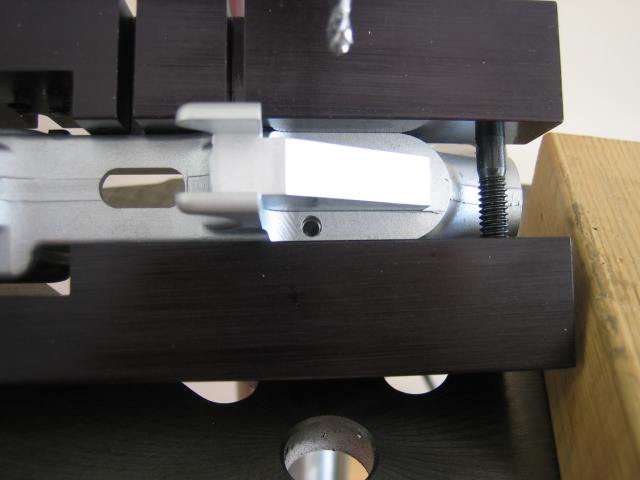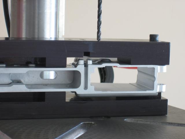 And below is what the receiver looks like aligned in the jig ready to be drilled…