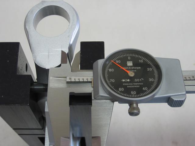 Then I scribed a line for the detent hole. I set the calipers to 1.575” and again referenced the top plane of the buffer tower…