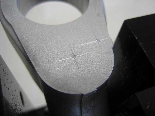 Instead of scribing the other line, I decided to use a 0.109” diameter transfer punch and set it against the take down pin lug…