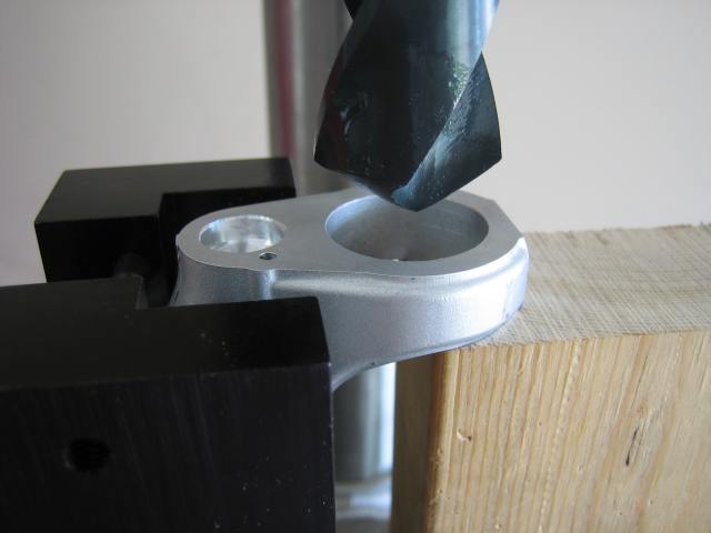 To better support the jig and receiver, I used a Columbian Clamp. Below is a pic showing my setup during the drilling process…
